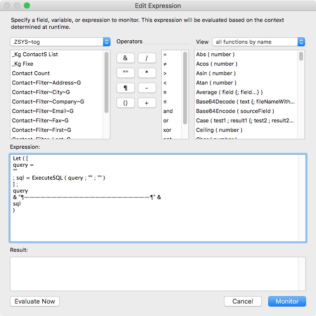 in order to pull out some results : we use the FileMaker syntax with some quote to produce SQL syntax ?!
