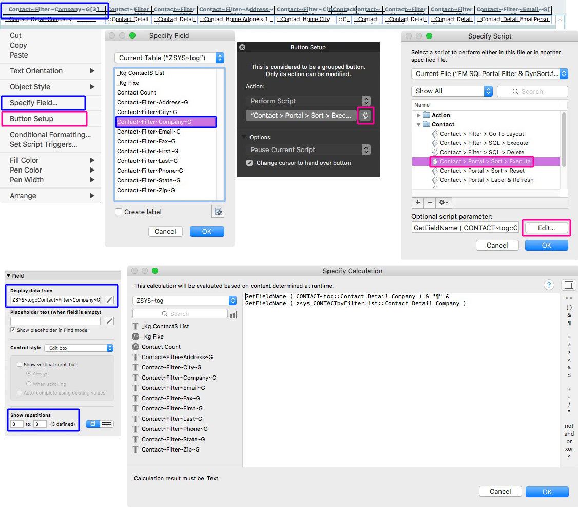 FileMaker Dynamic Sorting : Script alter Array Global Variable ?
