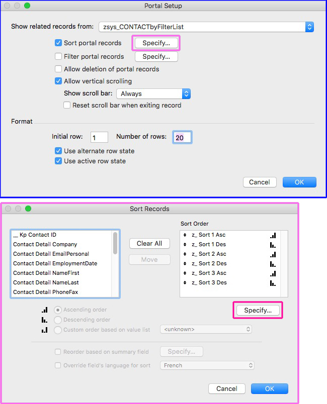 When you go in the Portal Setup Dialog Box, then you go on Sort portal records Dialog Box,
